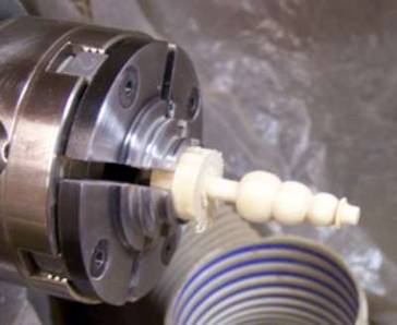 After parting off the top finial I turned a snowman with a ¼” tenon from the rest of the stock.