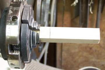 I turned a section at the end down to round and left a shoulder at the end of the round section. This will provide registration against the chuck jaws when I turn the piece end for end.