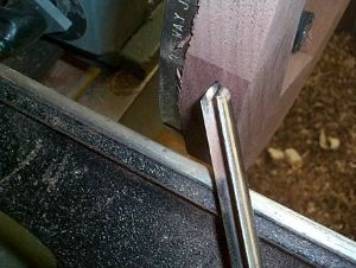Here I am using a gouge to remove the corners. I don’t take the ring all the way down to round at this point,