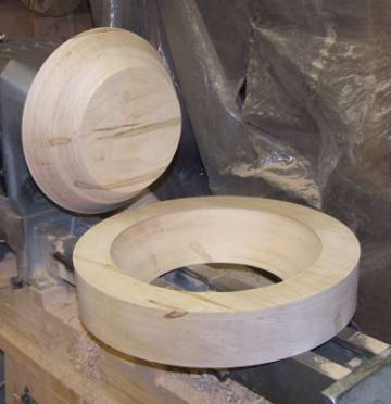 This is a method for getting a deeper bowl out of your stock than the thickness of the stock would normally allow. It is similar to the “Dovetail Bowl” technique but the ring(s) are one piece instead of two piece. Due to the width of the kerf from using a parting tool to cut the rings this is only practical using blanks that are fairly thick to start with. In this article I am using a 15” disk of 12/4 soft maple with a few ambrosia streaks through it. Judging by the amount of overlap I achieved with this one I would think that a similar process would work with 8/4 stock.