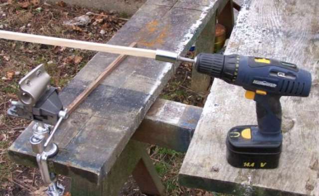 while pushing it through. They recommend a corded electric drill rather than a