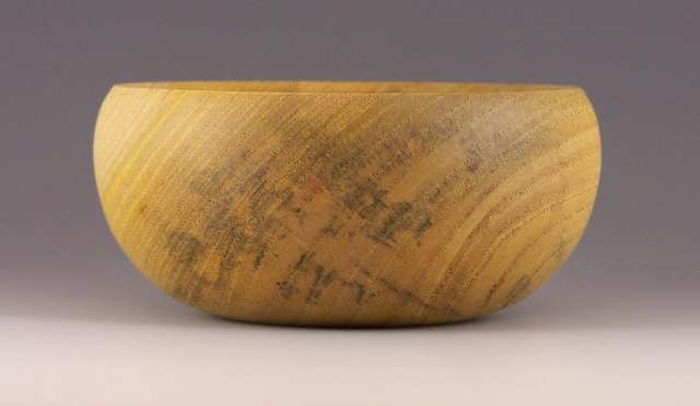 In actual fact, the base on this bowl is wider than it needs to be, but for THIS form, THIS time, it felt right to me. The bowl finished with a maximum diameter of 5 1/4" and the diameter of the base where it contacts a surface is about 2 1/4". By the previously mentioned rule of thumb I should have reduced the base diameter to about 1 3/4", which would have put it right about where that outer groove is turned. Possibly that would have improved the form, but I am happy with it at this size. And that is really the only real test of a form since I do this as a hobby.