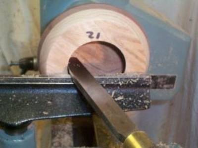dried and I have re-mounted the potpourri on the lathe for the final session of
