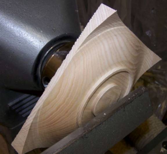 I then start the lathe and make a few light passes across the face of the blank to level and dress the surface.