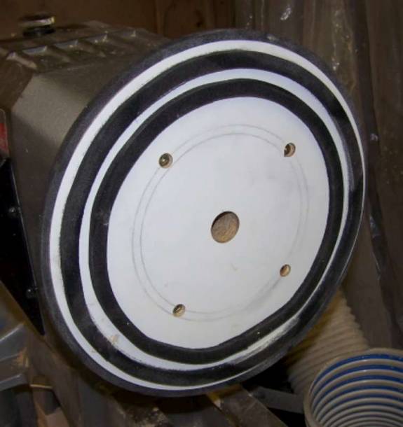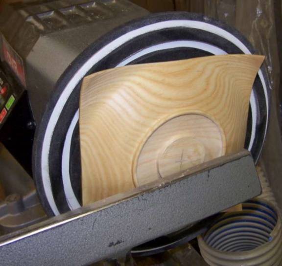 This is simply a piece of melamine sheet goods mounted to a backer board and face plate. I used self adhesive closed cell foam weatherstripping to provide a seal. I have the Nova vacuum chucking adaptor for my lathe that is designed to be used with a common shop vac. I admit that I was a bit sceptical about this set-up until I tried it. I must say that I have been impressed with its holding power.