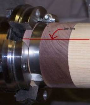 The hose clamps holding the two halves together are outside the parting cuts, so I don’t part too deeply.