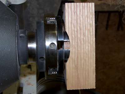 out on long grain edge.