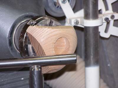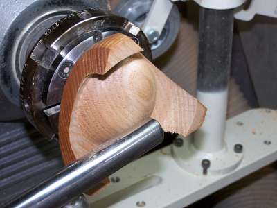 I then turned the blank around so that I could work on the top surface first. I wanted to establish the width of the feet before turning the bottom. I experienced a fair bit of chipping out on the long grain edge of this coarse grained oak.