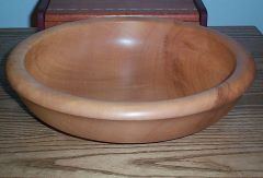 A fairly large bowl from hard maple. Dimensions approximately 14" in diameter and 2 1/2" high. |